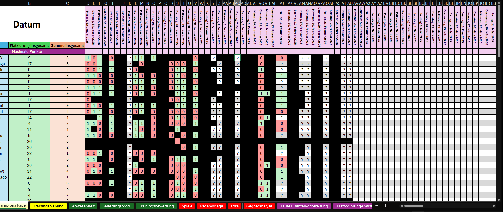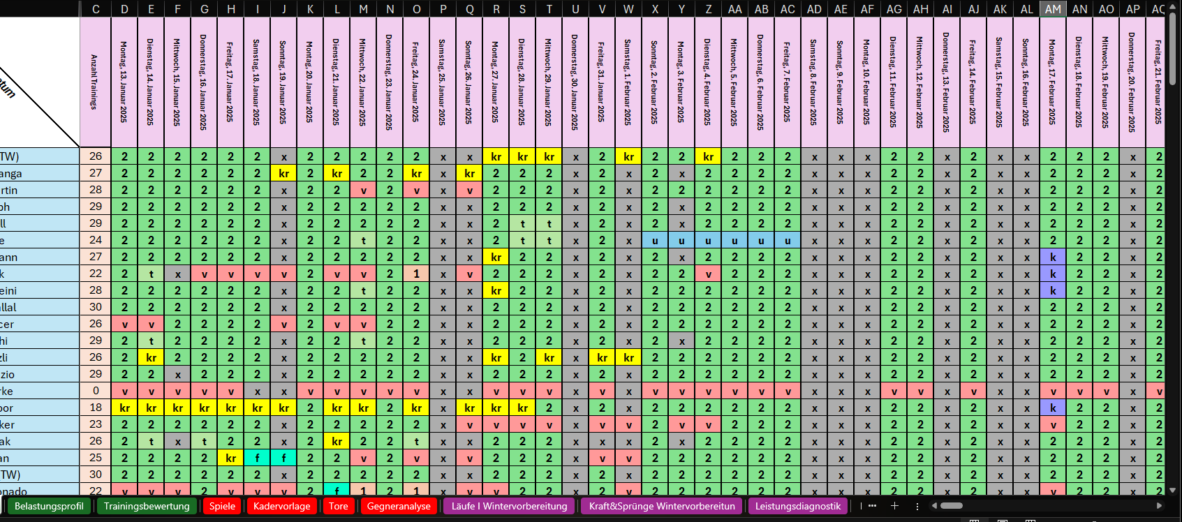 - Anwesenheit (Verletzungs- und Urlaubsinterface, nahezu vollautomatisch)